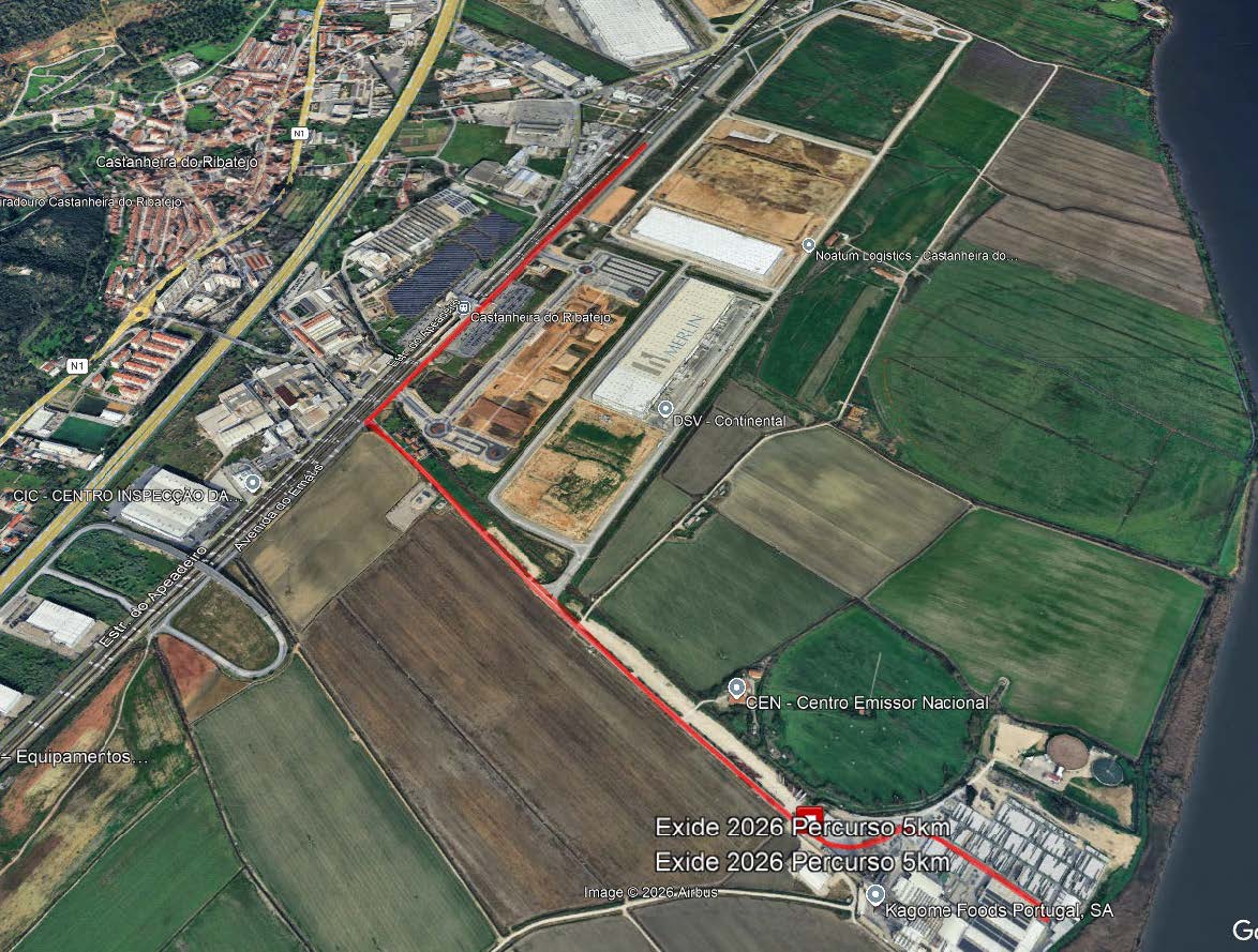 Percurso Caminhada 5km | Partida na Fábrica Hit / Estrada da Lezíria do Cortes / Av. do Emáus / Estrada da Lezíria do Cortes/ Fábrica Hit.